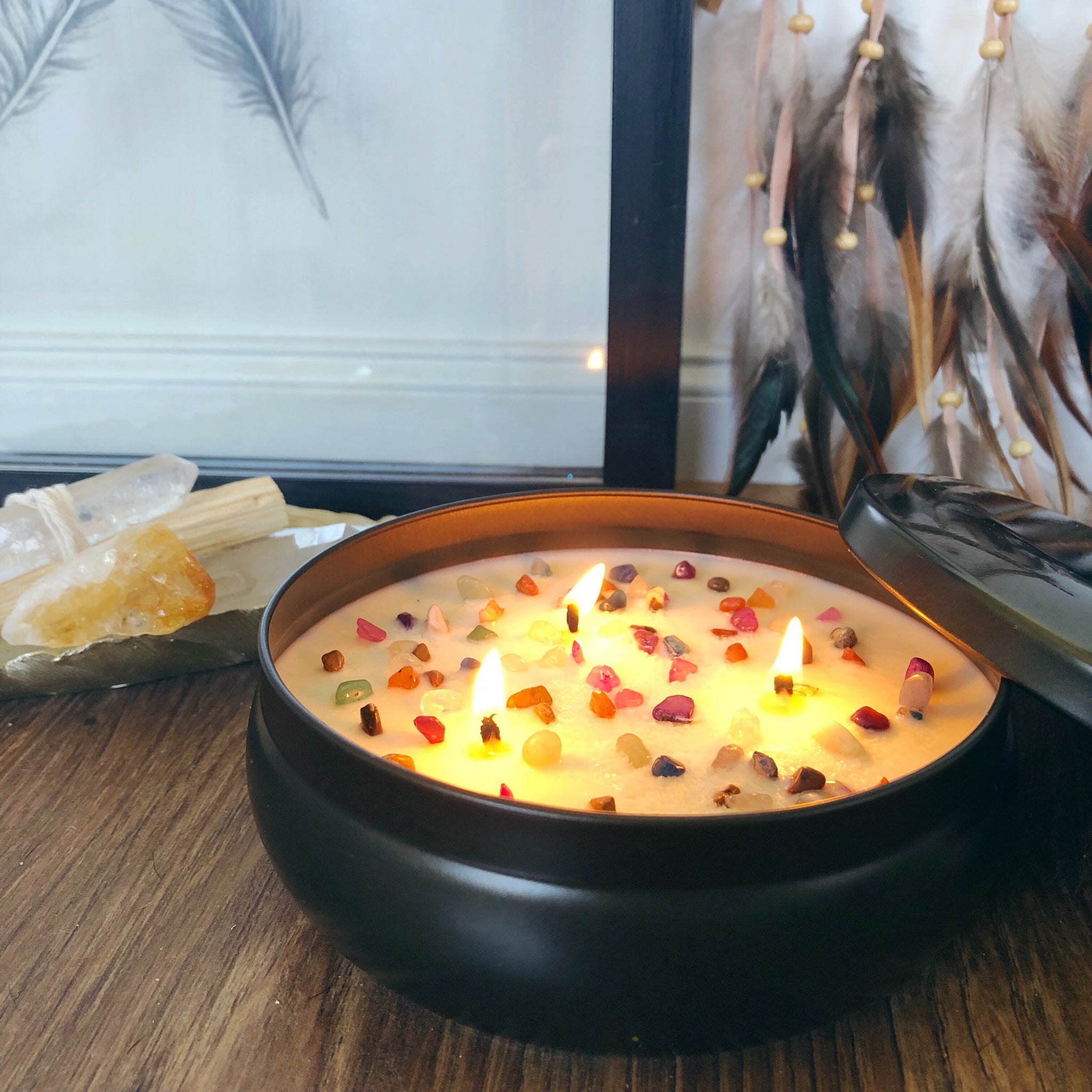 Our luxurious, natural quartz infused, triple wicked candle is seriously BEAUTIFUL! Almost too beautiful to burn!